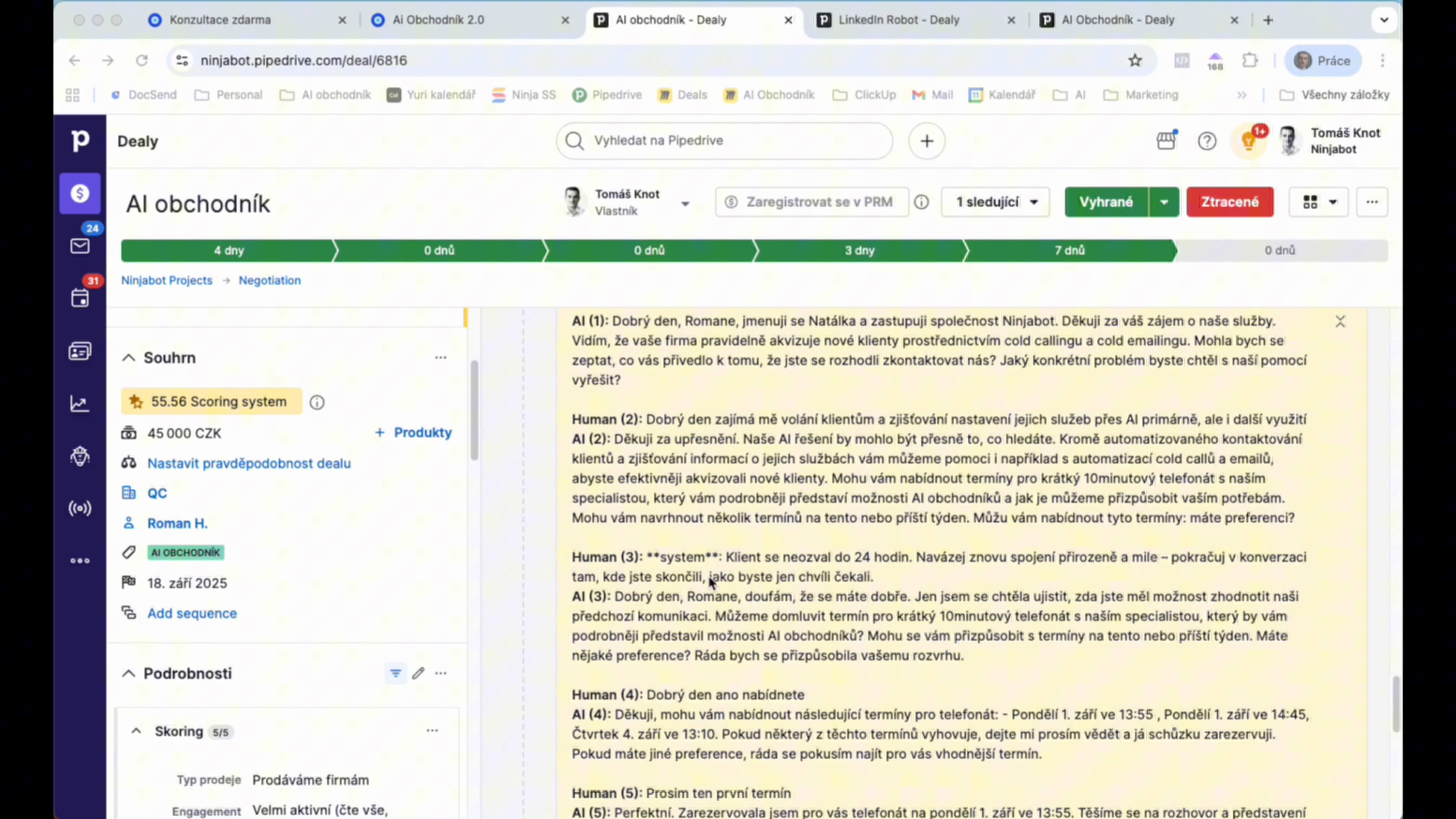 Zatímco vy vyjednáváte s klientem, AI obchodník vám mezitím připravuje další tři schůzky. A dělá to naprosto spolehlivě.